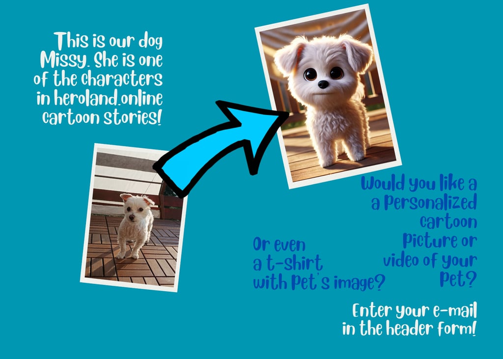 Tell us your hero’s story, and we’ll turn it into a personalized adventure! Star in your own animated 3D cartoon video or order custom 3D cartoon merch: t-shirts, stickers, and more.